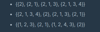 "{{2},{2,1},{2,1,3},{2,1,3,4}}" [2, 1, 3, 4] "{{1,2,3},{2,1},{1,2,4,3},{2}}" [2, 1, 3, 4] "{{4,2,3},{3},{2,3,4,1},{2,3}}" [3, 2, 4, 1]