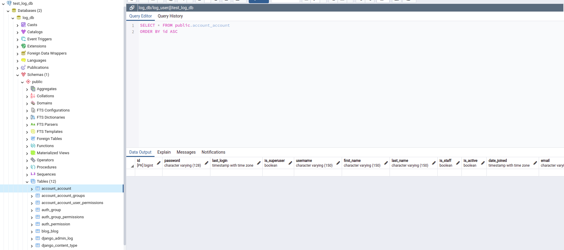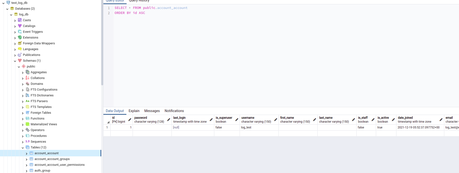 위의 경우는 위 테스트에서 db_manager를 통해 log_db에 account 데이터가 저장되어 있기 때문에 된 걸로 확인되었습니다.