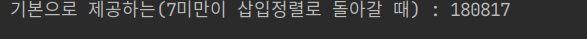 System.out.println("기본으로 제공하는(7미만이 삽입정렬로 돌아갈 때) : "+ (finish-start)); //590_920_861
