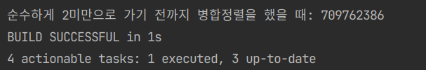 System.out.println("순수하게 2미만으로 가기 전까지 병합정렬을 했을 때: "+ (finish2-start2)); //797_125_740