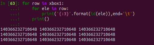 3. [ [ '-' for _ in range(3)] for _ in range(3)]