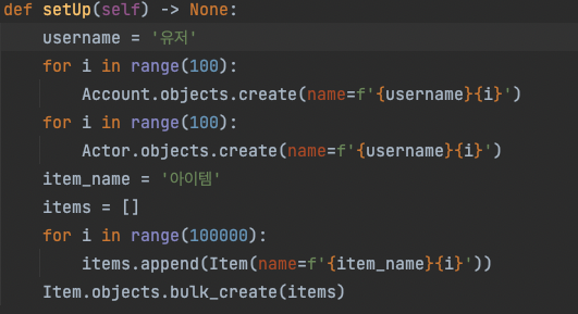 하지만 bulk_create를 썼을 때는 큰 차이가 안 났었다.