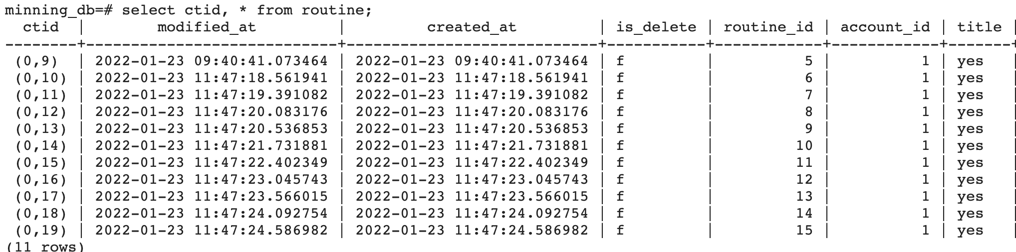 - CTID는 테이블 내의 특정 row의 물리적 위치를 나타낸다.