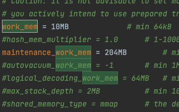 자세히 보니 work_mem 하고 maintenance_work_mem 을 올려주면 성능을 극대화 할 수 있다고 한다. 한 번 해봤다.