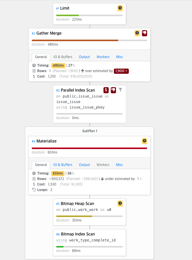 1. 만약에 Gater Merge 또는 Materialize를 했을 때 work_mem 그리고 maintence_work_mem의 설정을 바꿔주자.