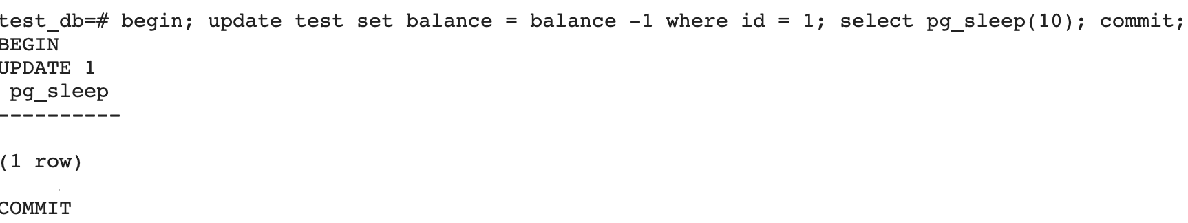 begin;select pg_sleep(1); update test set balance = balance +1;