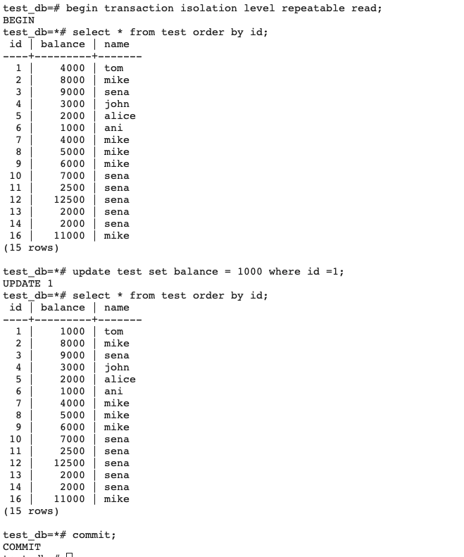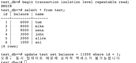 그 결과 유령 읽기는 postgreSQL에서 Repeatable Read 단계에서는 볼 수없는 것으로 확인된다.