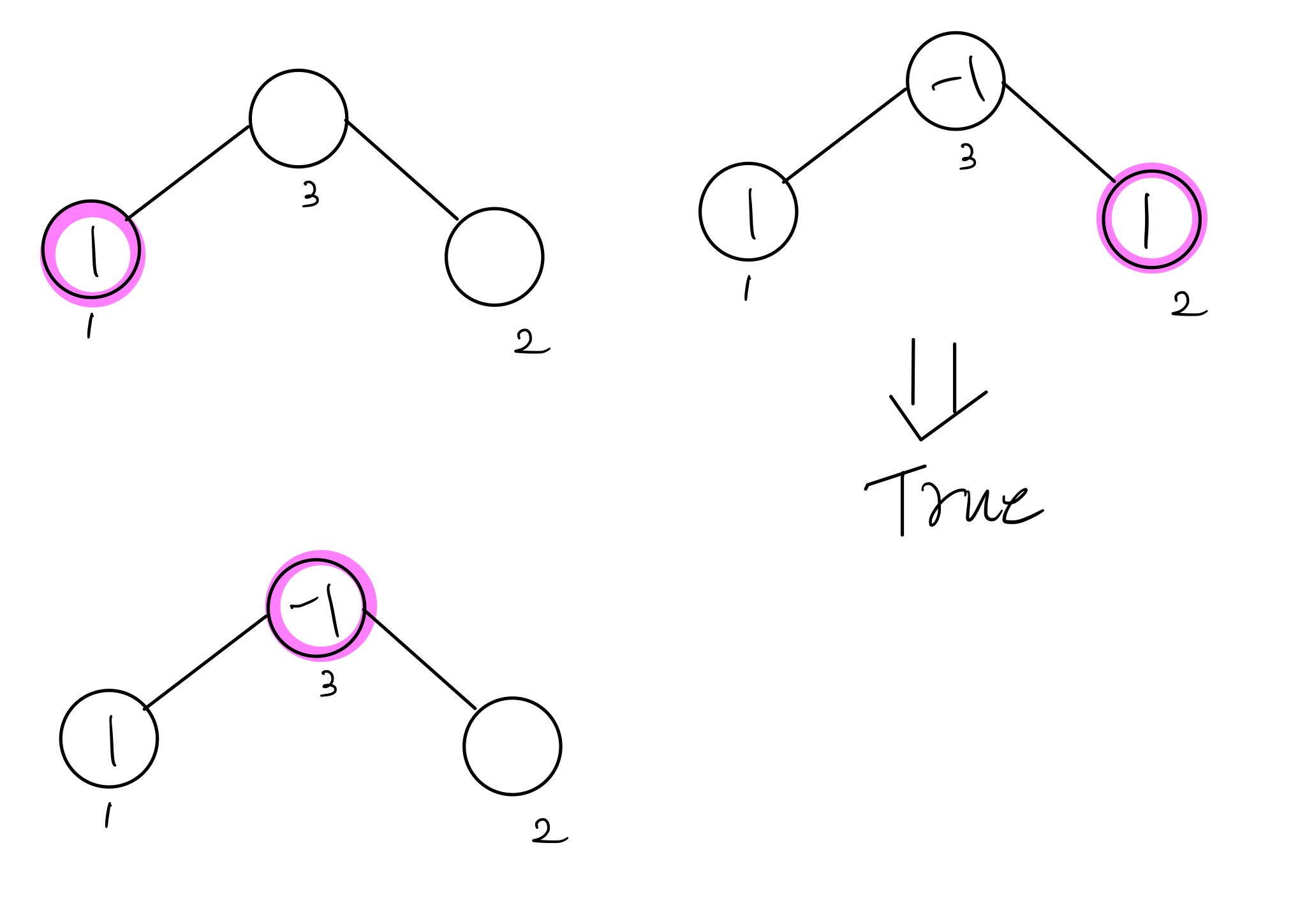위의 그림들은 문제에 있는 예시로 표현하였다. 첫 번째 예시 같은 경우에는 각 정점마다 같은 값을 가진 정점이 없으므로 "YES"를 출력할 수 있지만 두번 째 예시의 경우에는 3번째 정점에서 4번째 정점과 같은 값을 가져서 False를 발생시키고 "NO"를 출력한다.