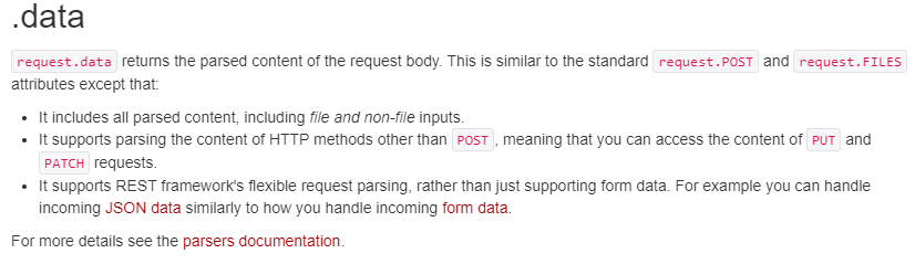 request.data는 parsing된 request의 body의 content부분을 반환해준다.